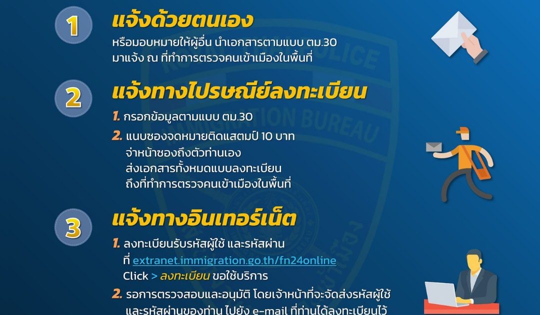 สามารถแจ้งได้ 3 วิธี: ด้วยตนเอง / ไปรษณีย์ / ออนไลน์