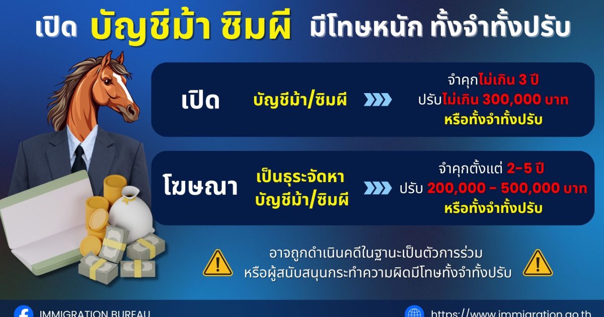 รู้ทันก่อนเสียอนาคต! รับเปิดบัญชีม้า – ซิมม้า โทษหนักถึงคุกอย่าตกเป็นเหยื่อหรือผู้ร่วมกระทำผิดโดยไม่รู้ตัว 30 ตุลาคม 2025 โดย admin / ข่าวประชาสัมพันธ์ รู้ทันก่อนเสียอนาคต! รับเปิดบัญชีม้า – ซิมม้า โทษหนักถึงคุกอย่าตกเป็นเหยื่อหรือผู้ร่วมกระทำผิดโดยไม่รู้ตัวBe aware! Opening mule accounts or using mule SIM cards carries severe penalties including imprisonment. Don’t become a victim or an unwitting accomplice.”