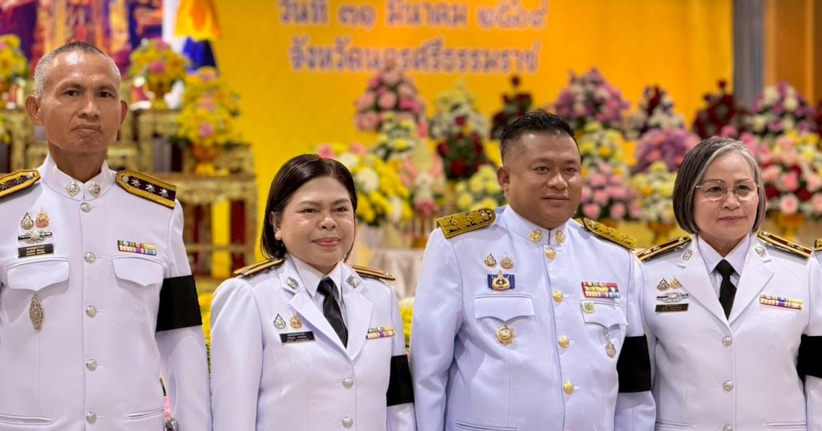 ร่วมพิธีถวายเครื่องราชสักการะเนื่องใน”วันที่ระลึกพระบาทสมเด็จพระนั่งเกล้าเจ้าอยู่หัวพระมหาเจษฎาราชเจ้า 31 มีนาคม 2026 โดย admin / ผลการปฏิบัติ ตม.จว.นครศรีธรรมราช ประจำปี 2569,งานอำนวยการ มี.ค.69 วันที่ 31มี.ค.69เวลา 07.00 น. ภายใต้การอำนวยการของ พล.ต.ต.ชูธเรศ ยิ่งยงดำรงสกุล ผบก.ตม.6 โดย พ.ต.ท.วรรณชัย สุขแจ่ม สว.ตม.จว.นครศรีธรรมราช มอบหมายข้าราชการตำรวจในสังกัด เข้าร่วมพิธีถวายเครื่องราชสักการะเนื่องใน “วันที่ระลึกพระบาทสมเด็จพระนั่งเกล้าเจ้าอยู่หัวพระมหาเจษฎาราชเจ้า” ณ ศาลาประชาคม โรงละครองค์การบริหารส่วนจังหวัดนครศรีธรรมราช โดยมีนายสมชาย ลีหล้าน้อย ผู้ว่าราชการจังหวัดนครศรีธรรมราช เป็นประธานในพิธี