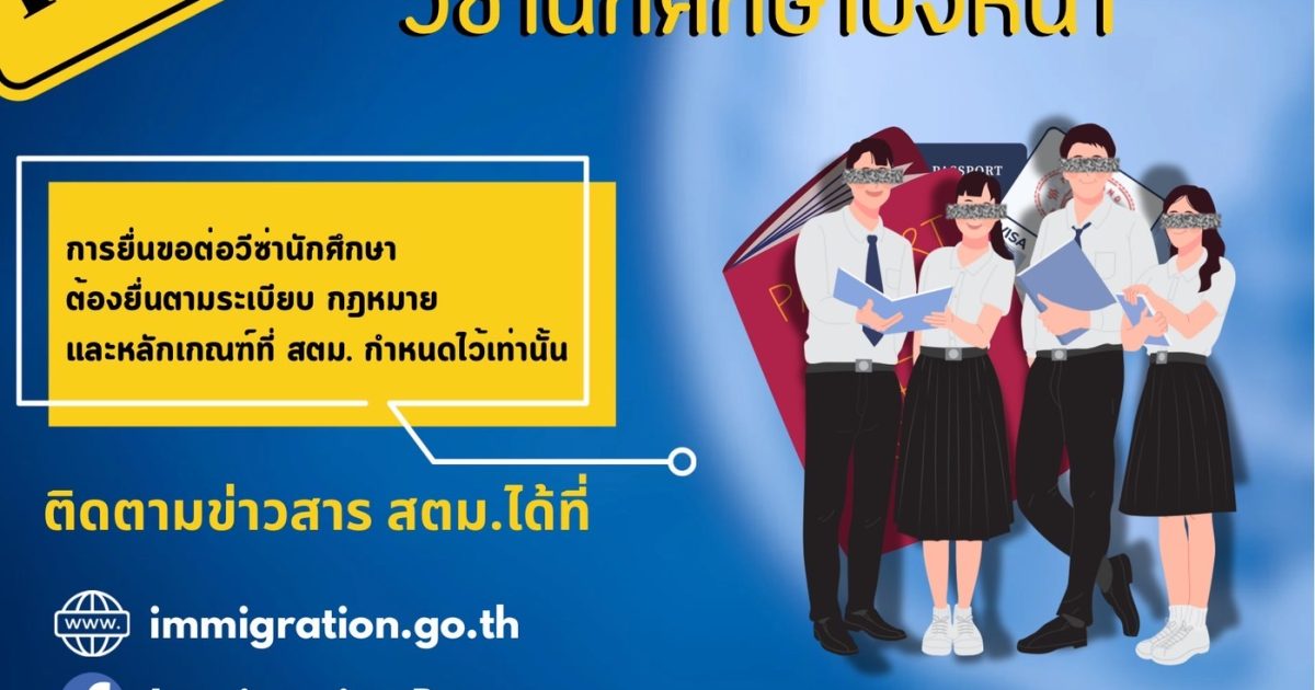 หยุด! ขบวนการใช้วีซ่านักศึกษาบังหน้า 28 พฤษภาคม 2025 โดย admin / ข่าวประชาสัมพันธ์,ข่าวฝากประชาสัมพันธ์ หยุด! ขบวนการใช้วีซ่านักศึกษาบังหน้าการจะได้รับวีซ่านักศึกษาต้องเป็นไปตามหลักเกณฑ์ของ สตม. เท่านั้น อย่าตกเป็นเครื่องมือของขบวนการผิดกฎหมาย ศึกษารายละเอียดเพิ่มเติมได้ที่ https://www.immigration.go.th/?p=14695#ImmigrationBureau #ตม #วีซ่านักศึกษา #ข่าวเตือนภัย #ตรวจคนเข้าเมือง #StudentVisa