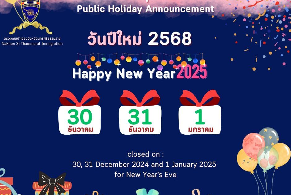 แจ้งวันหยุดปีใหม่ 2568