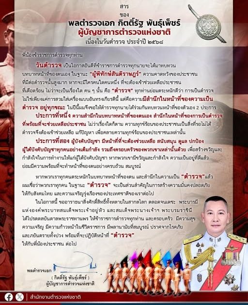 สารของ พล.ต.อ.กิตติ์รัฐ พันธุ์เพ็ชร์ ผู้บัญชาการตำรวจแห่งชาติ เนื่องใน “วันตำรวจ” 17 ตุลาคม 2568