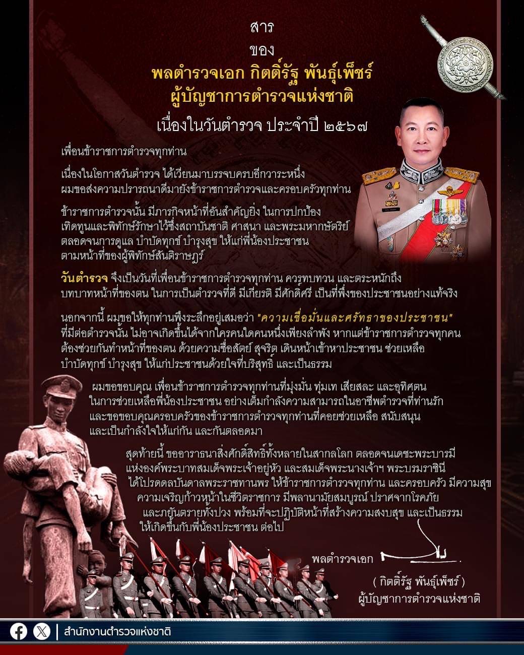 ร่วมสักการะพระบรมฉายาลักษณ์ รัชกาลที่ 4 และอ่านสาร ผู้บัญชาการตำรวจแห่งชาติ เนื่องในวันตำรวจ ประจำปี 2567 17 ตุลาคม 2024 โดย admin