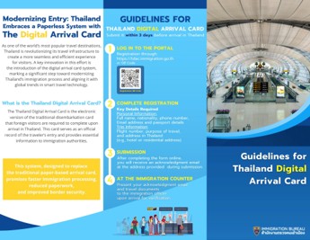 สํานักตรวจคนเข้าเมืองไทยได้แนะนําการใช้ ประเทศไทย Digital Arrival Card (TDAC) เพื่ออํานวยความสะดวกแก