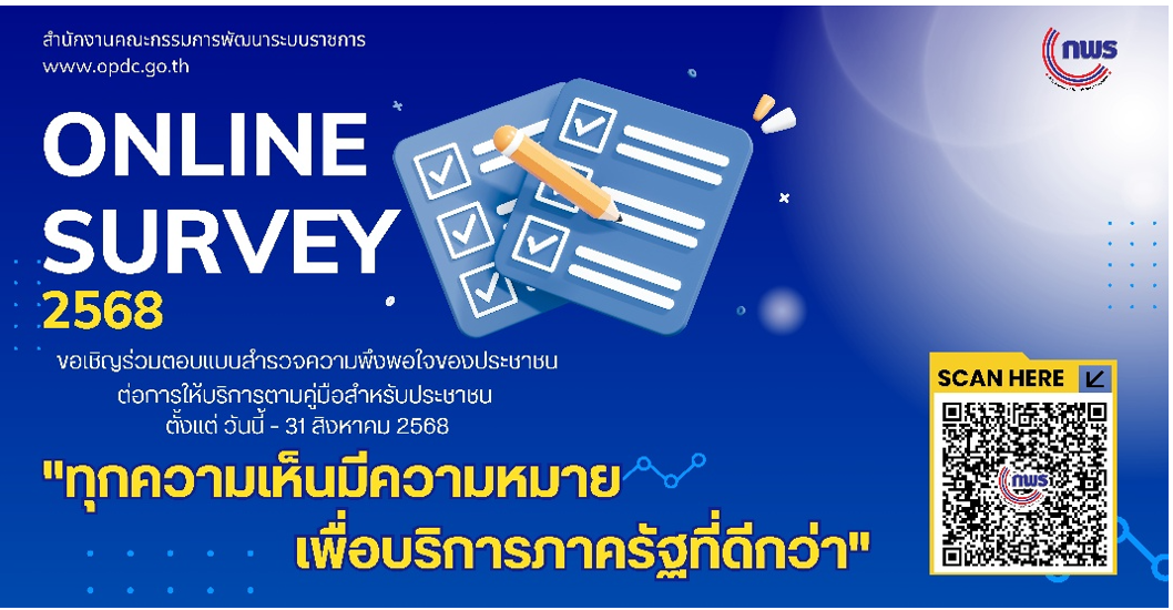 สำนักงาน ก.พ.ร. ขอเชิญร่วมตอบแบบสำรวจความพึงพอใจของประชาชนต่อการให้บริการของหน่วยงานของรัฐปี พ.ศ. 2568