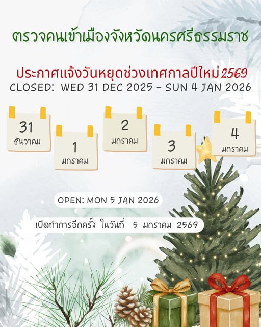วันหยุดเทศกาลปีใหม่ 2569 31 ธ.ค.68 – 4 ม.ค.69