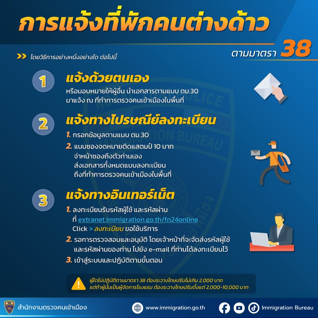 Important for Foreigners in Thailand Section 38 – House owners/landlords must notify foreigner resid