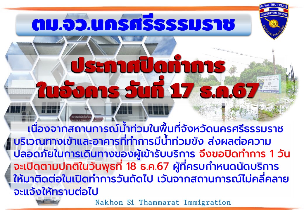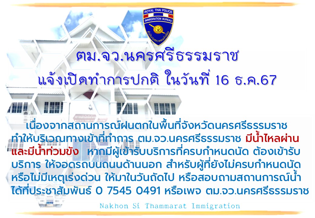 วันที่ 13 ธ.ค.67 เวลา 13.30 น. ภายใต้การอำนวยการของ พ.ต.ท.วรรณชัย สุขแจ่ม สว.ตม.จว.นครศรีธรรมราช ได