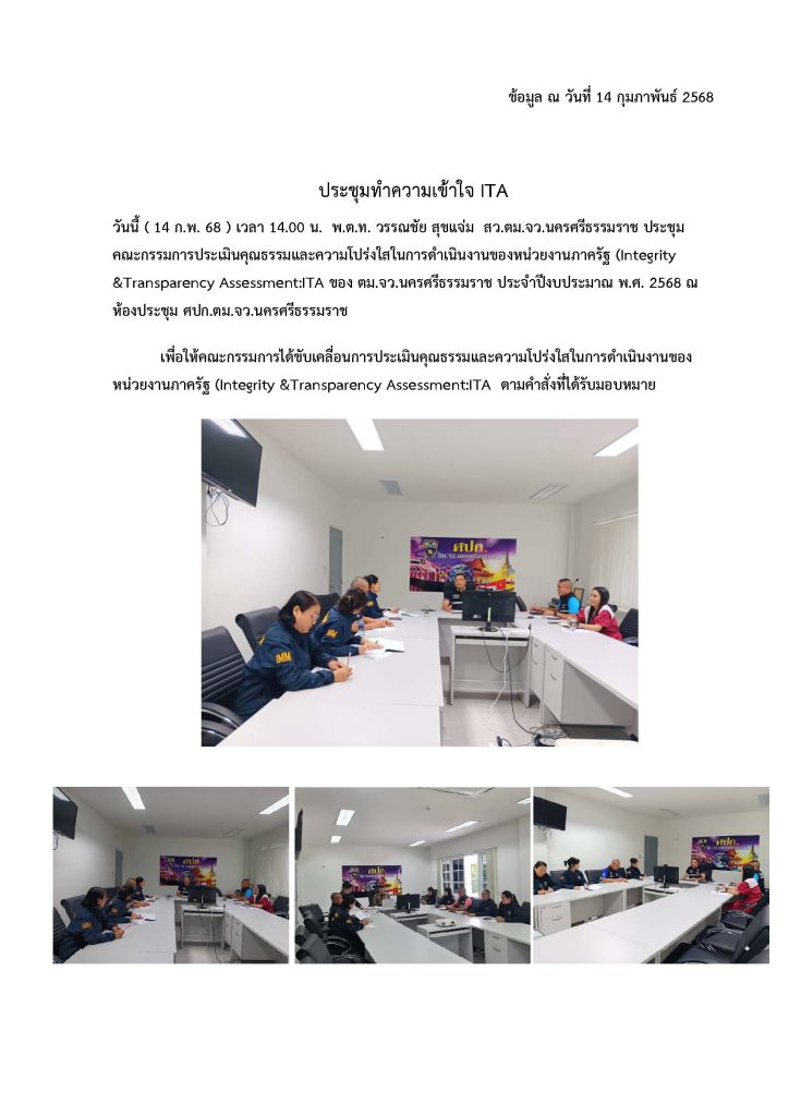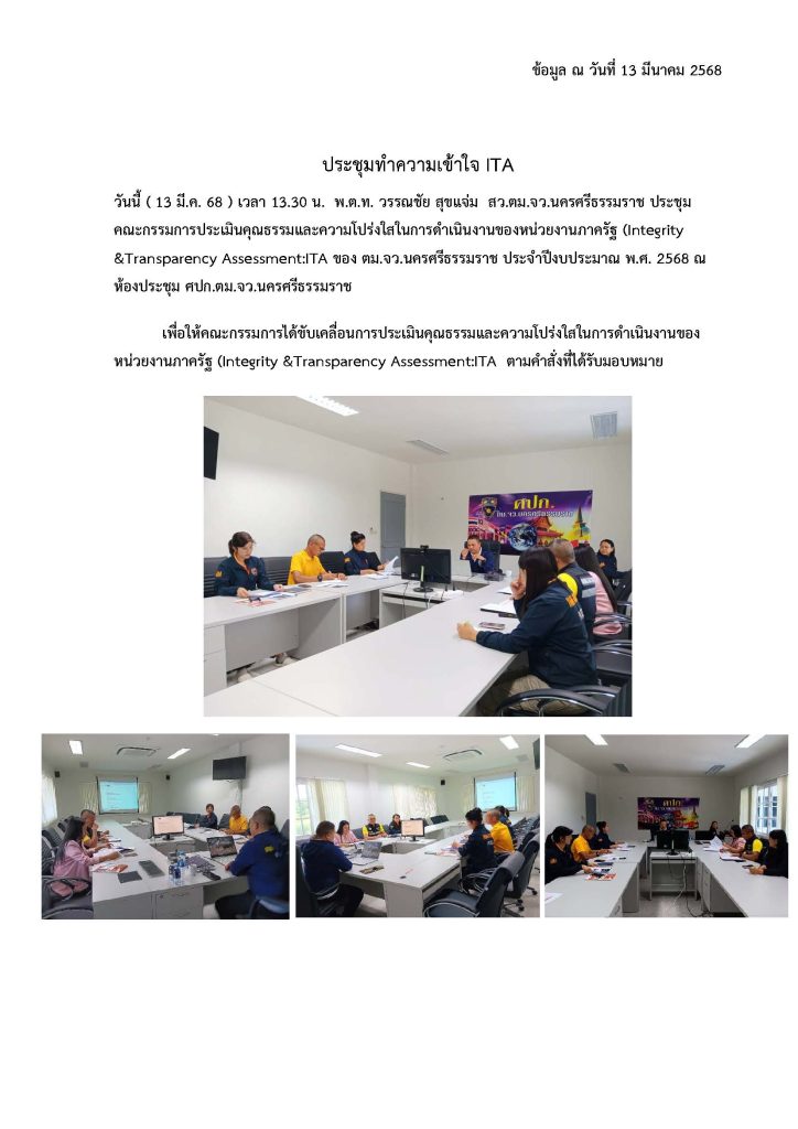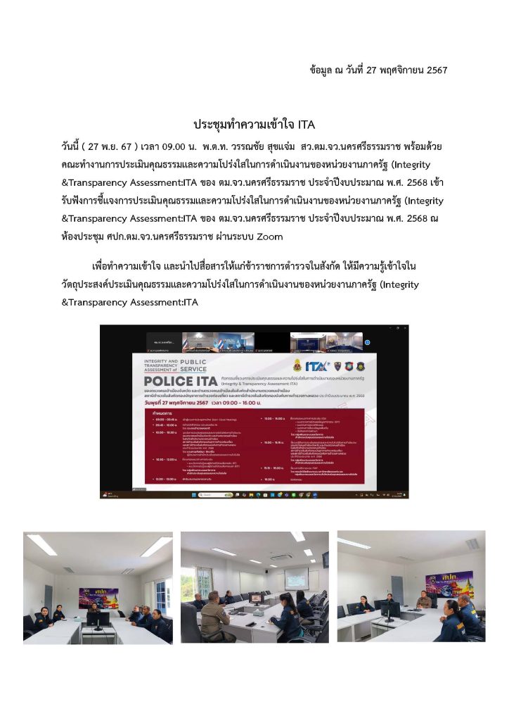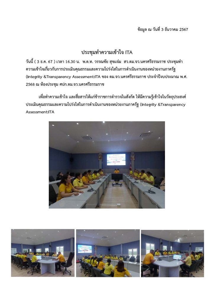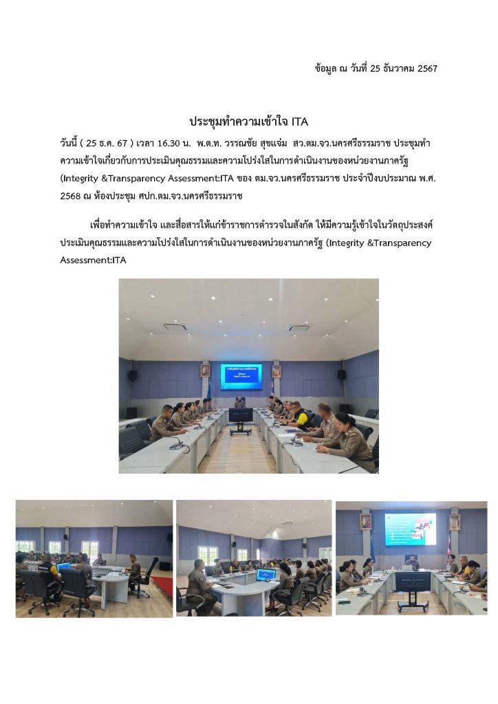 ประชุมทำความเข้าใจ ITA วันที่ ( 18 เม.ย. 68 ) เวลา 09.30 น. พ.ต.ท. วรรณชัย สุขแจ่ม สว.ตม.จว.นครศร
